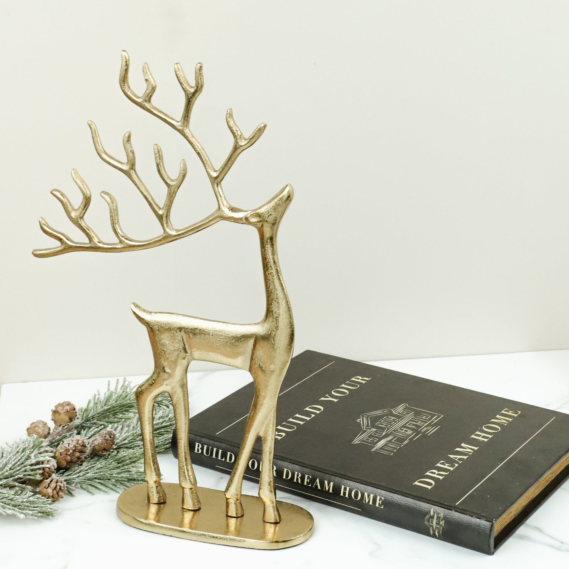 Add a touch of whimsy to your holiday decor with our 16" Gold Reindeer statue. This quirky yet elegant piece will make any room shine with its golden glow. Perfect for those who don't take themselves too seriously. (Not just for Christmas; great for year-round use too!)