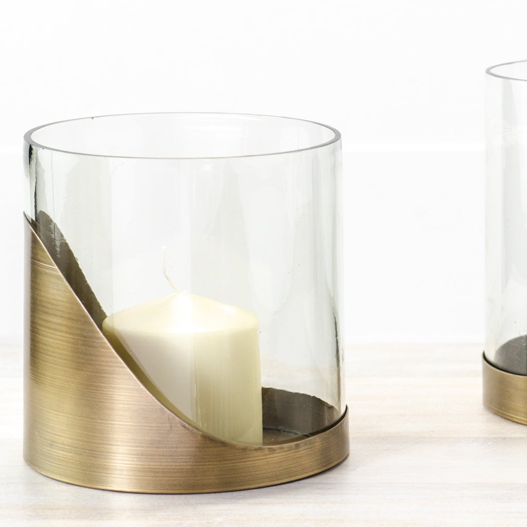 Expertly crafted with gold metal and glass, this 6" lantern is the perfect addition to your home decor. Illuminate any room with your favorite candles to create a warm and cozy atmosphere. Enhance your space with this elegant and timeless piece.