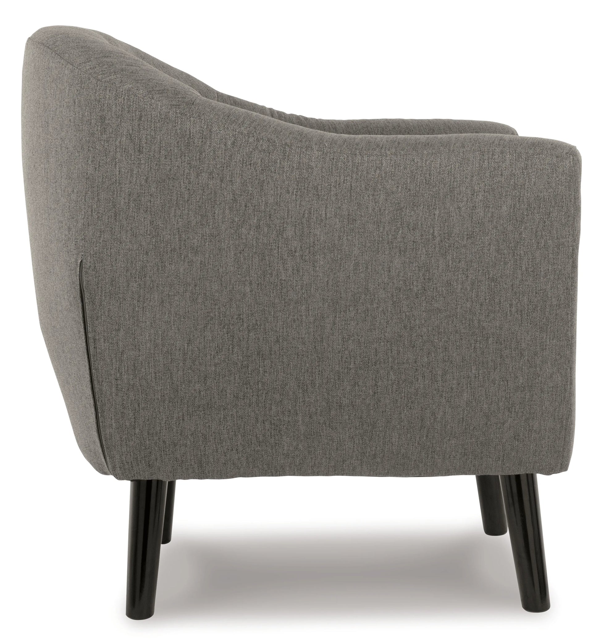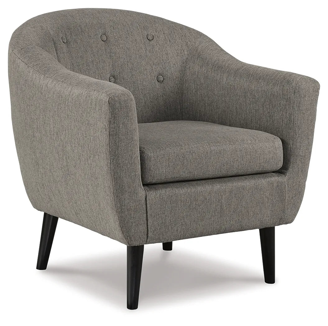With its angular legs, button tufting and tailored flair, this accent chair is clearly inspired by the best in mid-century design. The barrel style is as cool and relevant now as it was then. Textural weave of the upholstery so enriches the neutral hue.
