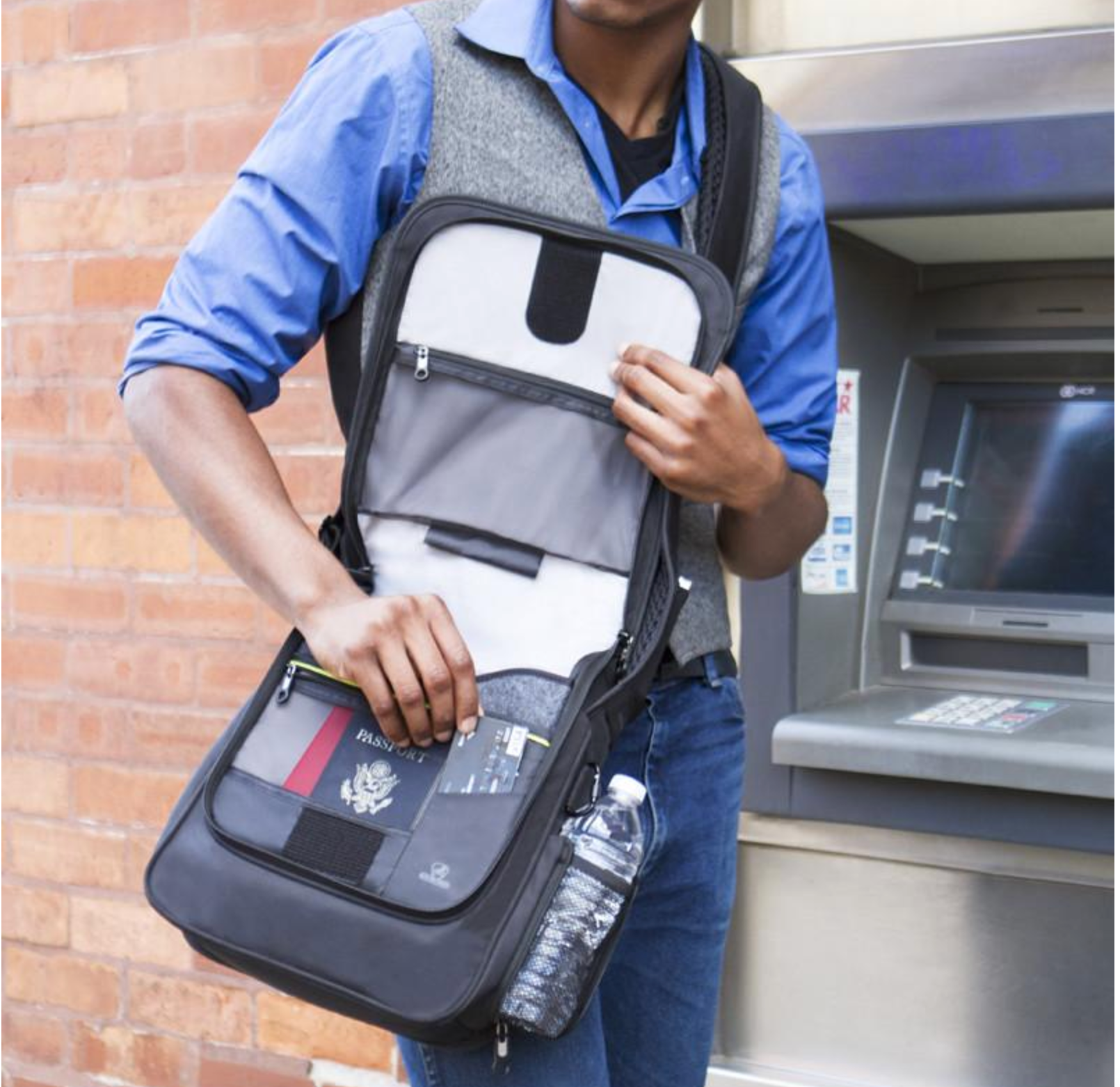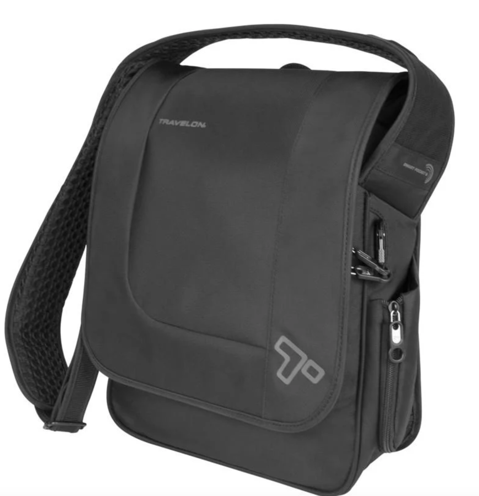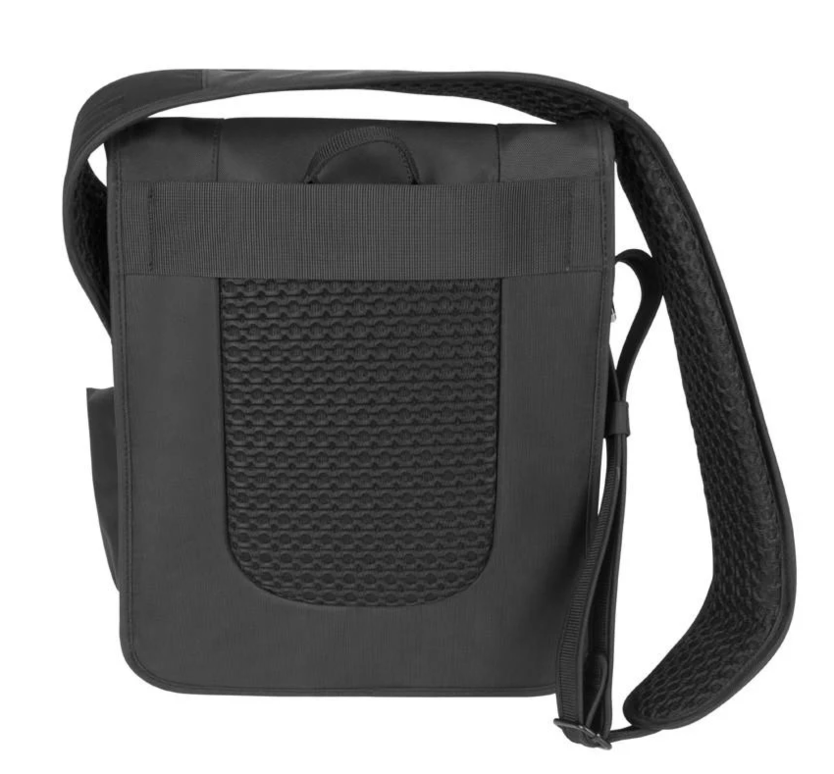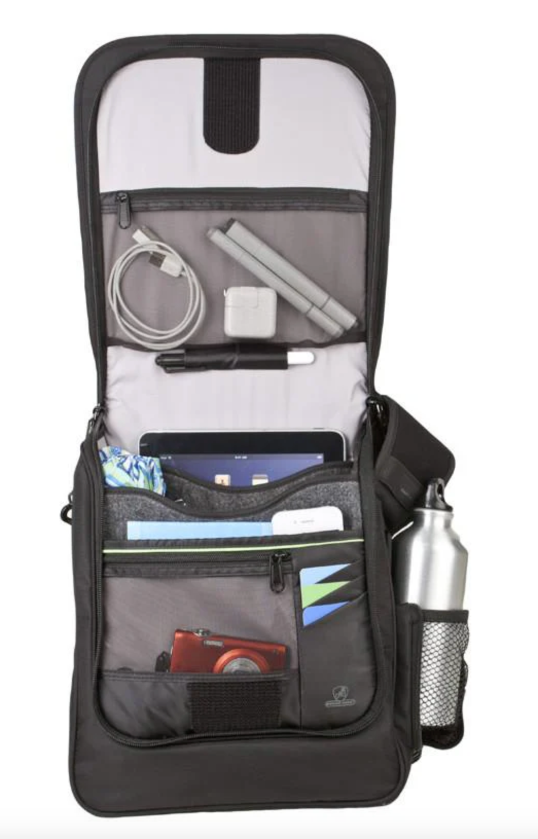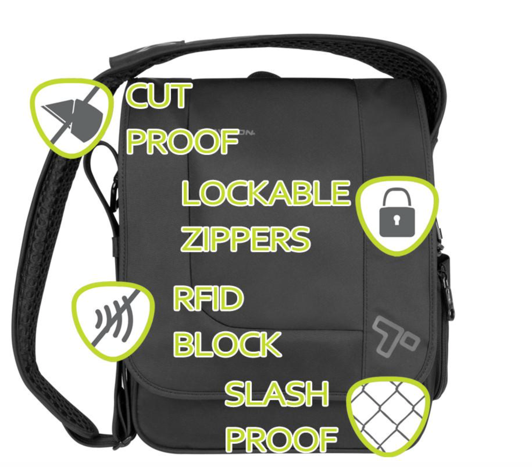 This rugged messenger bag can help you survive the concrete jungle and anything it throws your way - the Anti-Theft features will ensure your gear makes it to tomorrow. The large main compartment features organizational pockets, an RFID blocking pocket and a dedicated iPad/tablet sleeve pocket that is lined to protect against scratches. There is an expandable side pocket to store a water bottle, and a concealed front pocket can hold your passport, book, or other commonly used items during your day. The rugged material conceals a cable link web along the front, side, bottom and pockets that protects your bag from being cut open by bag slashers that will try to steal whatever falls out. The zippers feature anti-theft clasps that lock them closed making it difficult for pick pockets to easily open your bag and steal the contents. The adjustable shoulder strap has a concealed cable in the material to stop thieves from cutting your strap and running off with the bag, plus it detaches on one end to loop around a chair or table leg and lock it back into place - this stops thieves form trying to run off with your bag when you might be distracted while eating a meal or snack. If you are traveling with an upright rolling suitcase, the Urban Messenger Bag can be attached to the handle using the slip on the back.
