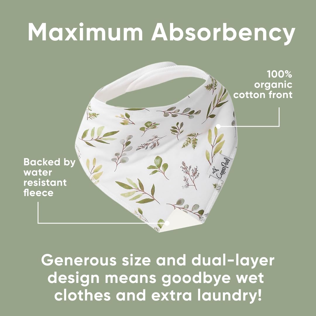 - MAXIMUM ABSORPTION: Fronted by ultra-soft Organic Cotton and lined with water-resistant polyester fleece to provide an extra layer of absorbency. Each bib is crafted with dual-layer protection against heavy drooling or spit-up, keeping your baby dry and comfortable.