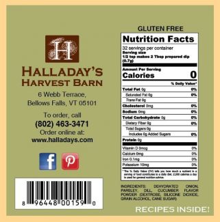 Onion, Parsley, Dill, Cucumber Flavor Powder (Dextrose, Silicone Dioxide, Grain Alcohol, Cane Sugar)