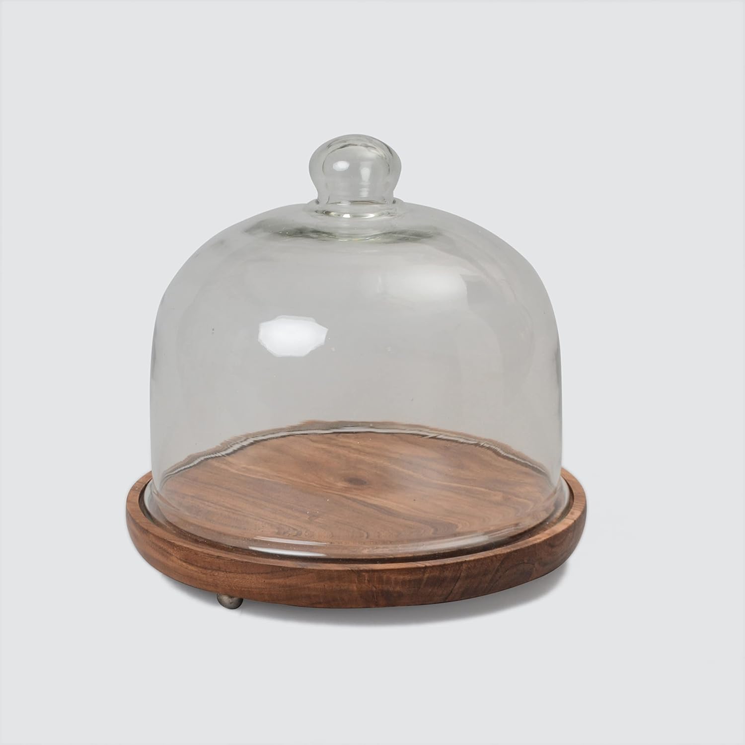 Table Glass Cloche with Acacia Wood Base