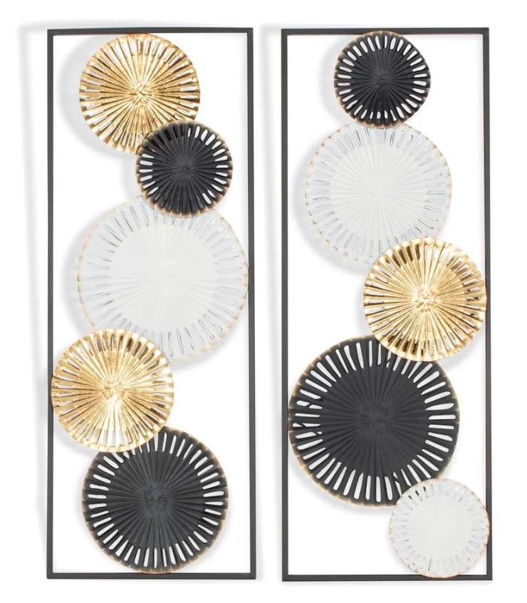 Blend contemporary and modern together with this artful set of metal wall decor. Striking black is softened with cool white and enhanced with glamorous gold to add style and luxury to any room in your home. 1.5 W X 35.5 H X 13.5 L (inches)